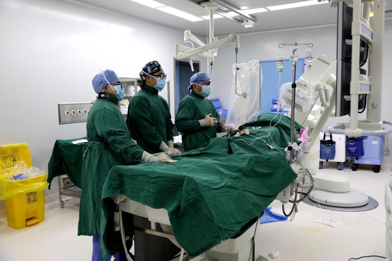 医疗团队为丁孟贤开展介入手术。浙大邵逸夫医院阿拉尔医院提供