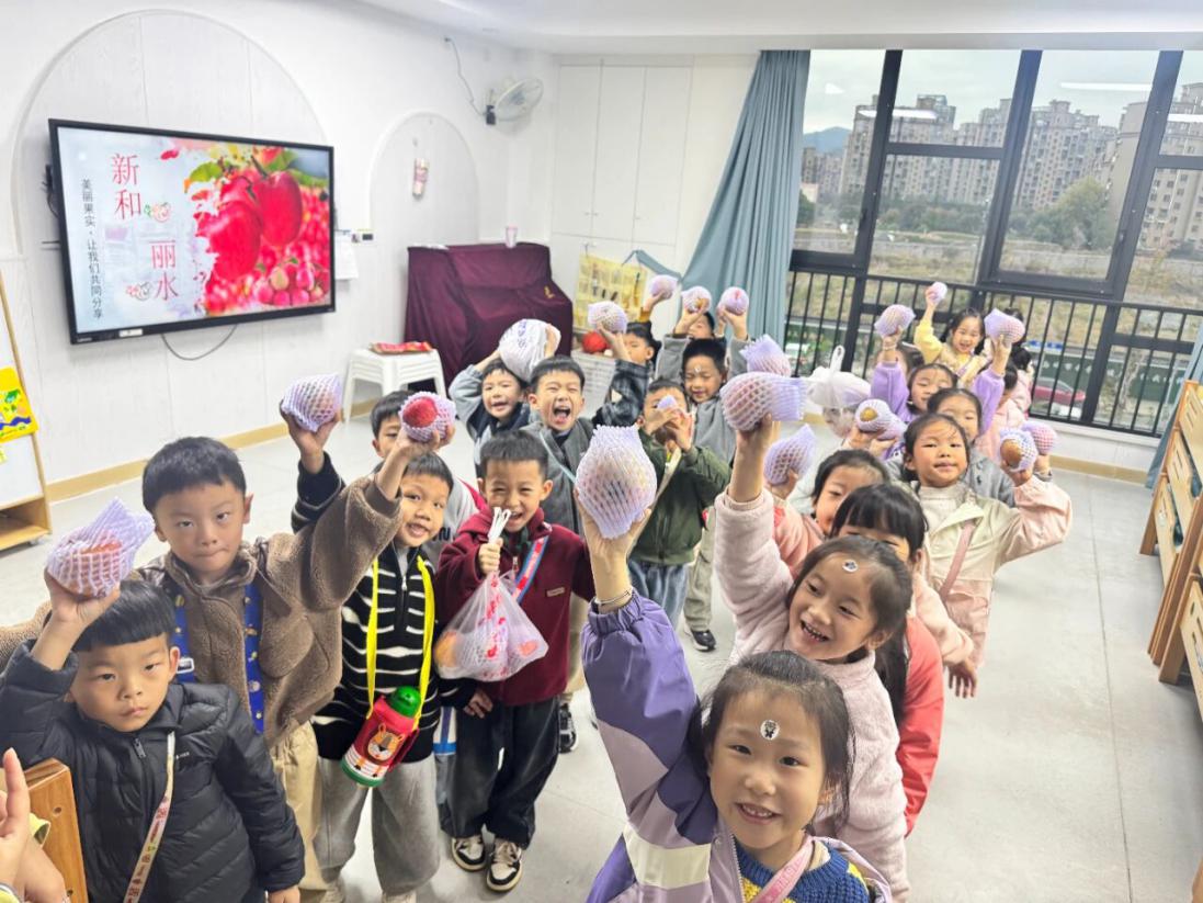 深秋渐寒,丽水市莲都区东方明珠幼教集团迎曦分园大一班教室内,却因一份跨越千里的礼物满是暖意。近日,孩子们收到了来自新疆新和县丽水幼儿园的特殊包裹,一箱箱红彤彤的苹果,这份甜蜜,正是对今年春天“云端植树”活动最暖心的回应。