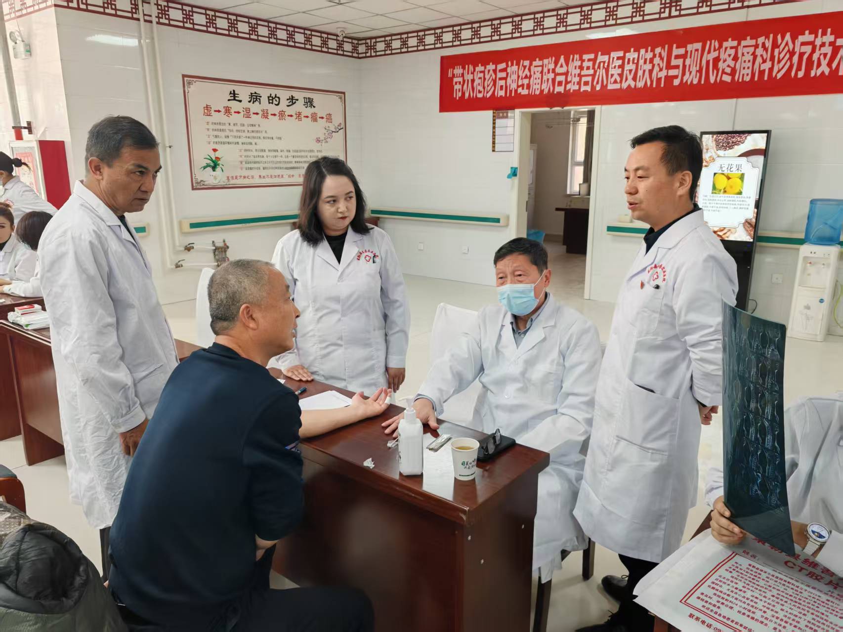 为深入贯彻落实国家中医药(民族医药)传承创新发展战略部署,推动优质医疗资源下沉,切实解决基层群众“看病远、看病难”问题,11月22日,自治区维吾尔医医院组织多学科资深专家团队前往策勒县中医医院,成功举办以“带状疱疹后神经痛联合维吾尔医皮肤科与现代疼痛科诊疗技术”为主题的大型联合义诊活动,为当地各族群众带来优质、便捷的特色医疗服务。