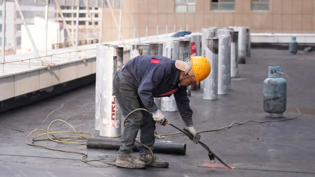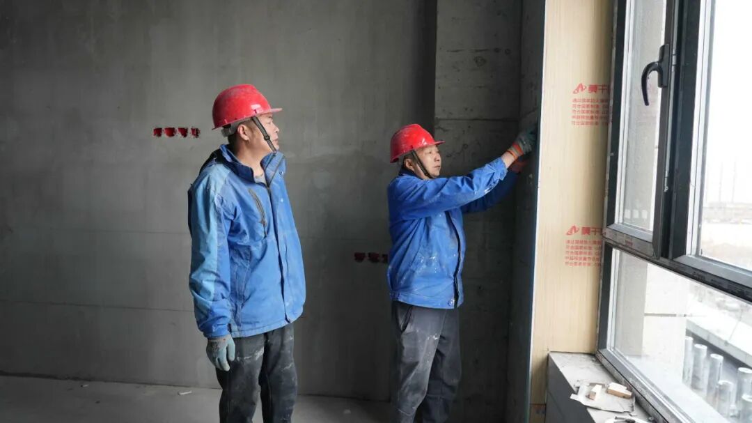 (工人正在抓紧施工)