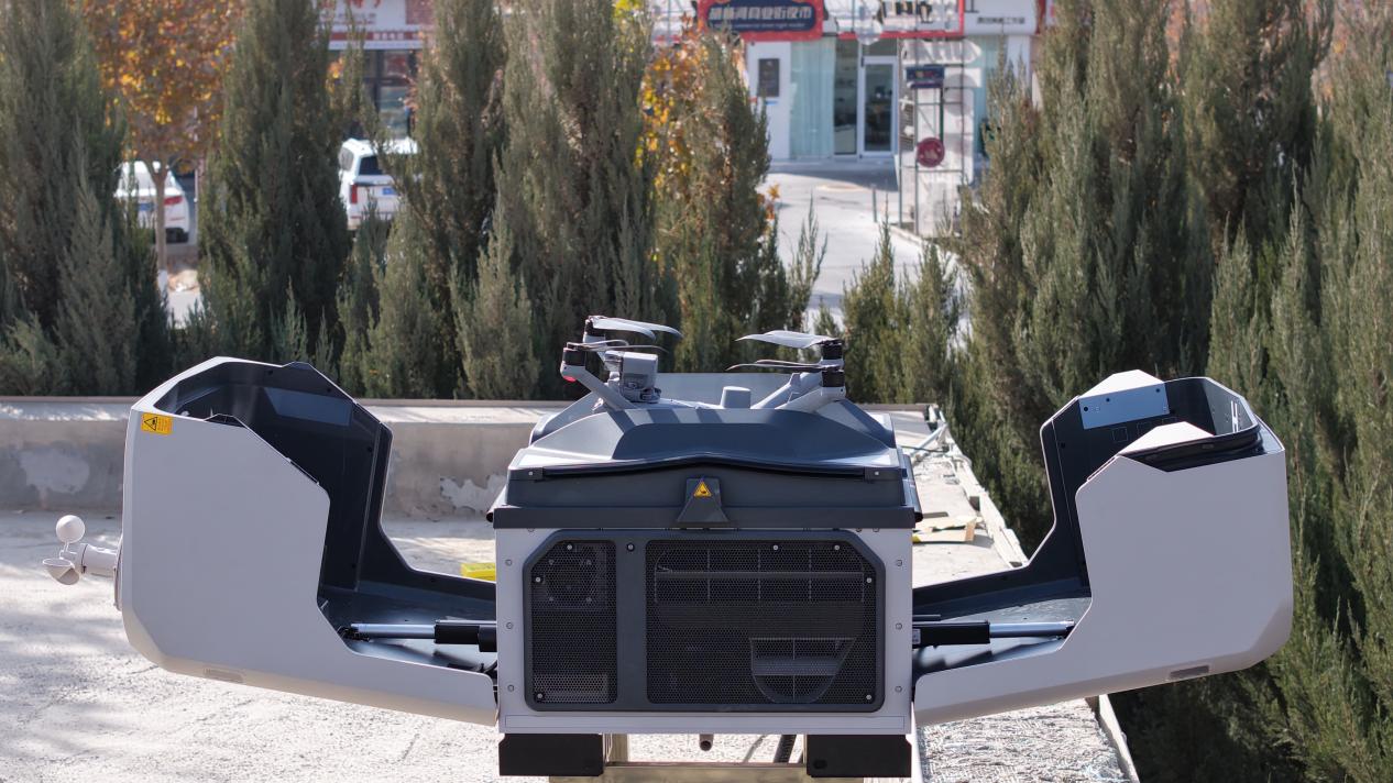胡杨河边的城市市政监测1号基站,无人机准备开启巡河任务。史达 摄
