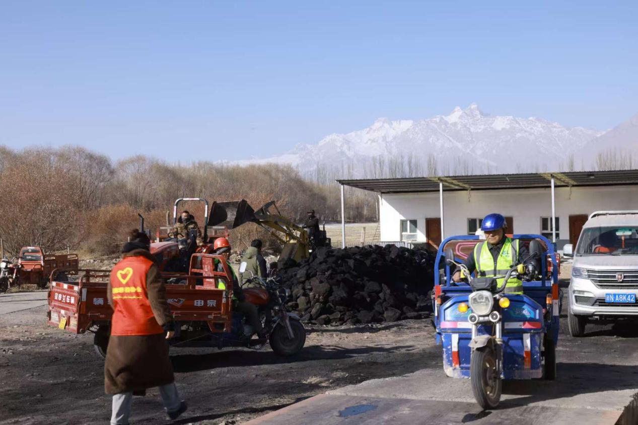 志愿者将活动中发放的“暖心煤”送至村民家中(吉丽特孜 摄)