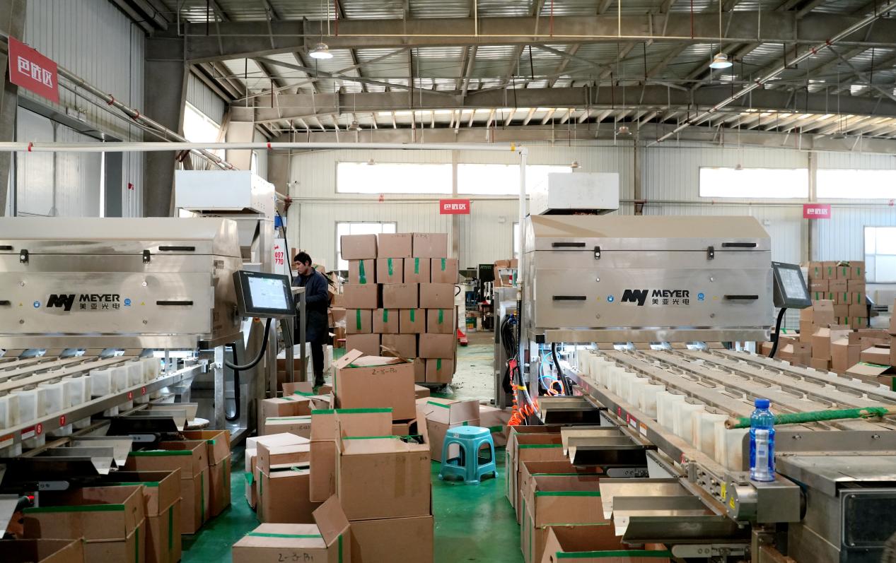 11月24日,记者走进位于园区金华援疆科技孵化园一期标准化厂房内,机器轰鸣作响,货车往来穿梭,多家核桃加工企业正开足马力赶制订单。在新疆果之品农业科技有限公司生产车间,采购回来的核桃经过手工取仁、智能色选分级、人工互检等多道工序,被精准分类后封装入库,流水线作业高效运转。新疆果之品农业科技有限公司销售经理宋永林介绍:“10台国内先进机器人色选机与2台直线色选机配套使用,日产能达15吨,核桃仁细分为坚白、普白等六大类产品。”