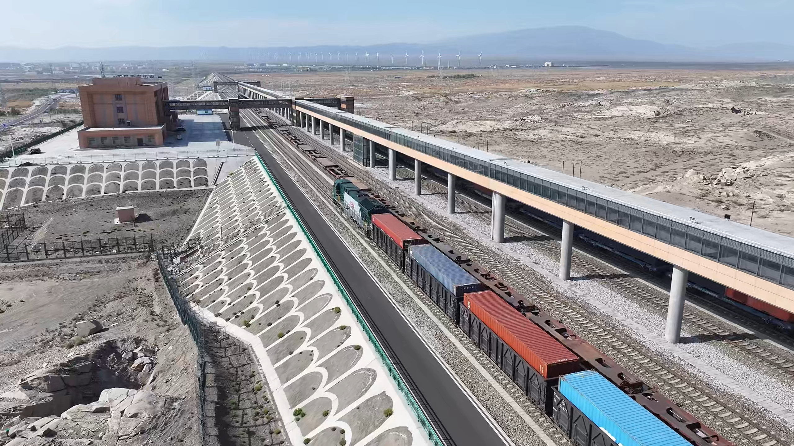 航拍阿拉山口铁路综合查验场。格日乐图 摄