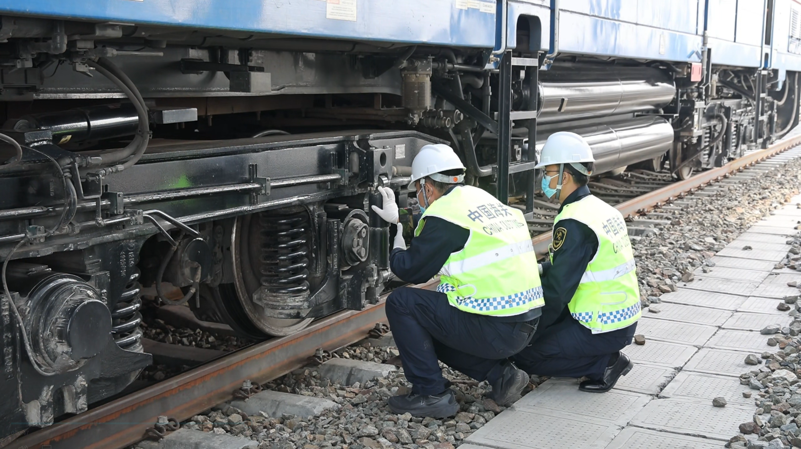 阿拉山口海关关员正在监管一列入境中欧班列。格日乐图 摄