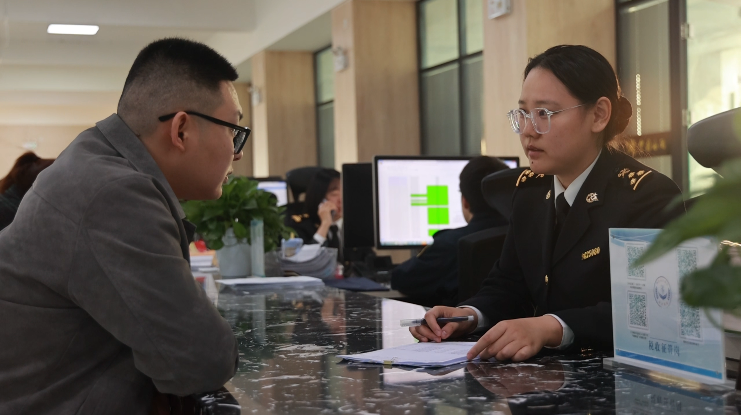 阿拉山口海关关员正在为企业办理通关业务。龙正宇 摄