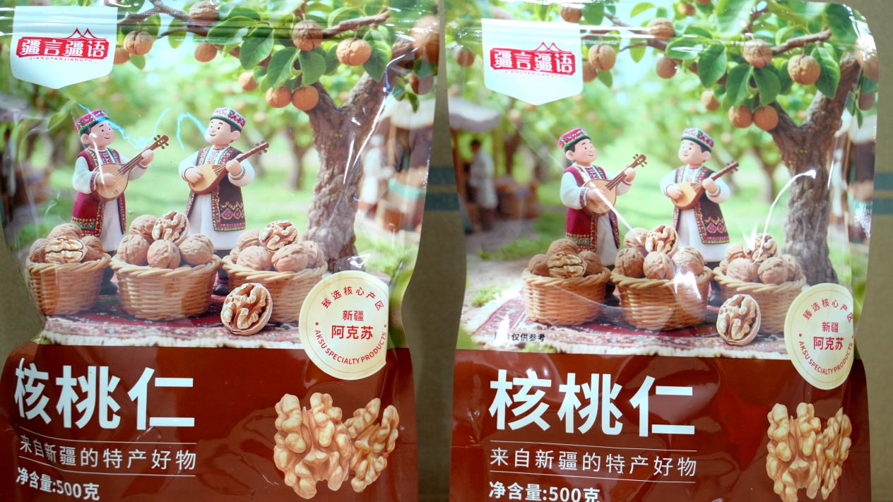 阿克苏禧洋食品科技有限公司推出的“疆言疆语”系列核桃仁产品(赵新昌 摄)