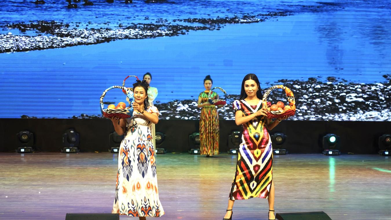 温宿县“展巾帼风采 绽时代芳华”新时代文明实践展示活动服装展示(阿依努尔·阿布都外力 摄)