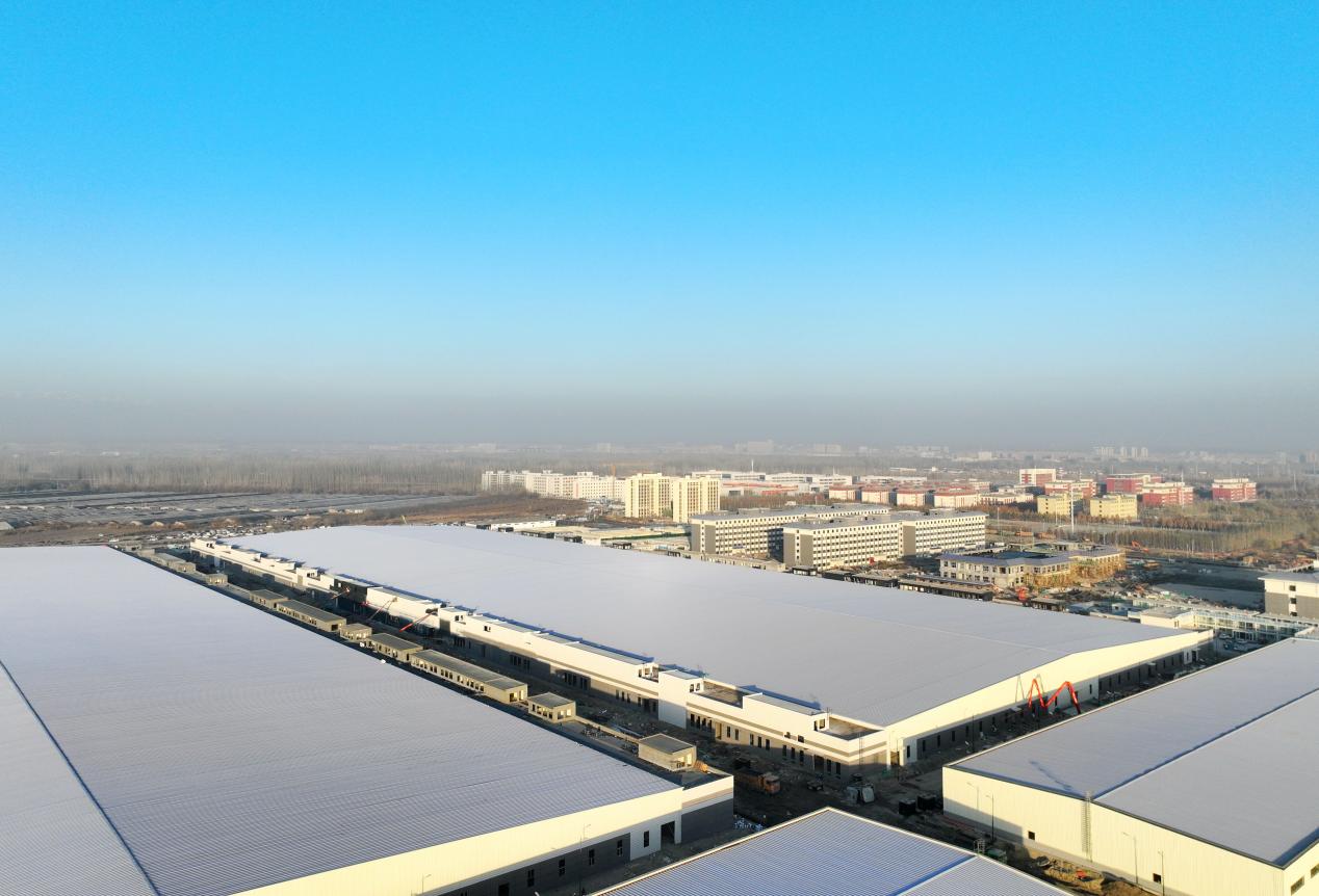 温宿新投纺织科技有限公司100万锭棉纺项目鸟瞰,项目主体已完成,工人正在进行内外部装修、设备安装等工作(赵新昌 摄)