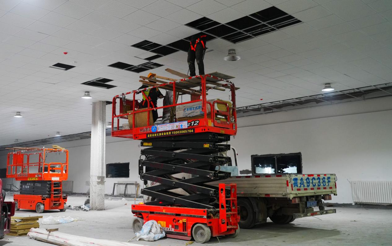 在温宿新投纺织科技有限公司100万锭棉纺项目纺纱车间,工人正在安装通风换气设备(赵新昌 摄)