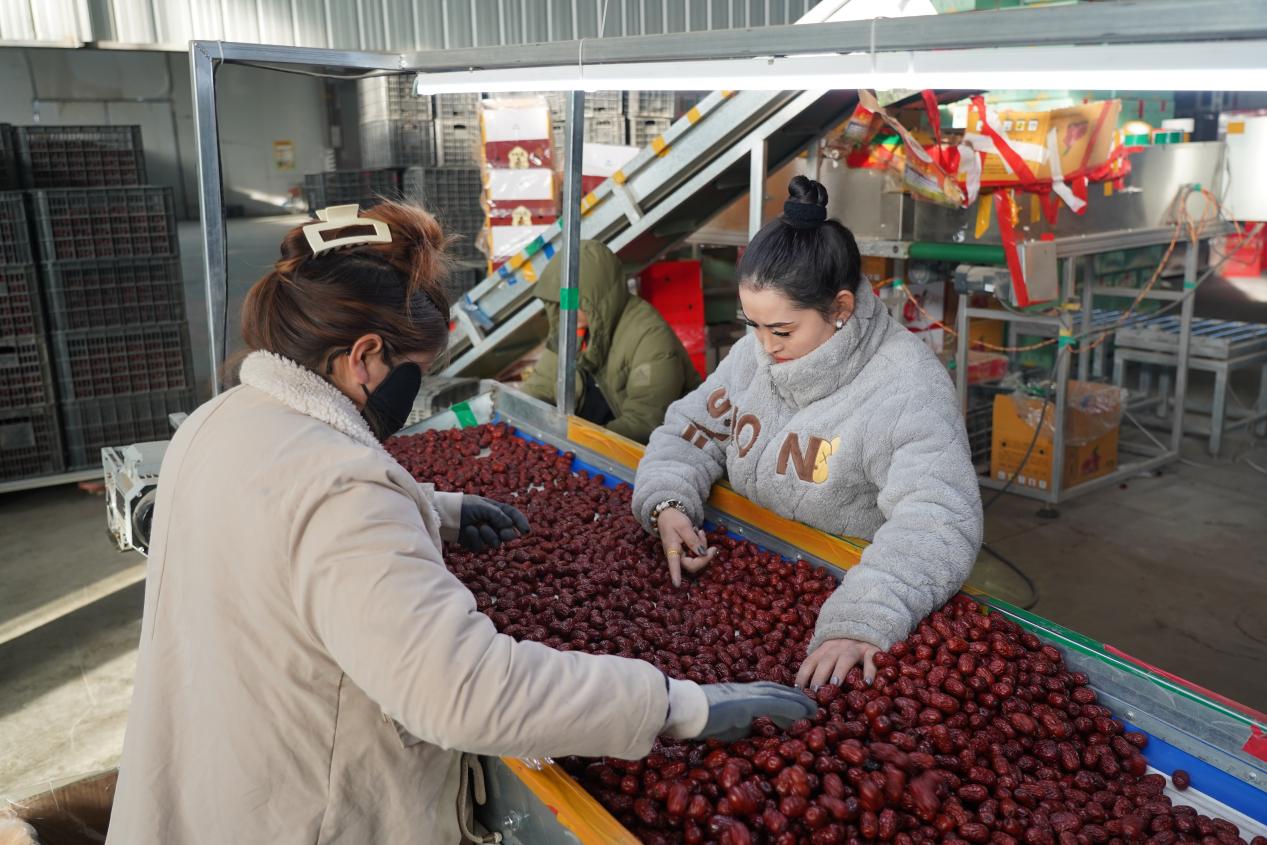 作为温宿县知名的林果加工企业,涵翠果业依托当地优质的红枣资源,大力发展初级加工业务。在加工车间内,新收购的红枣经过多道工序处理后,被分装成统一规格的产品,准备发往各地市场。这条高效的生产线,不仅提升了农产品的附加值,也为当地特色林果业拓宽了销售渠道。