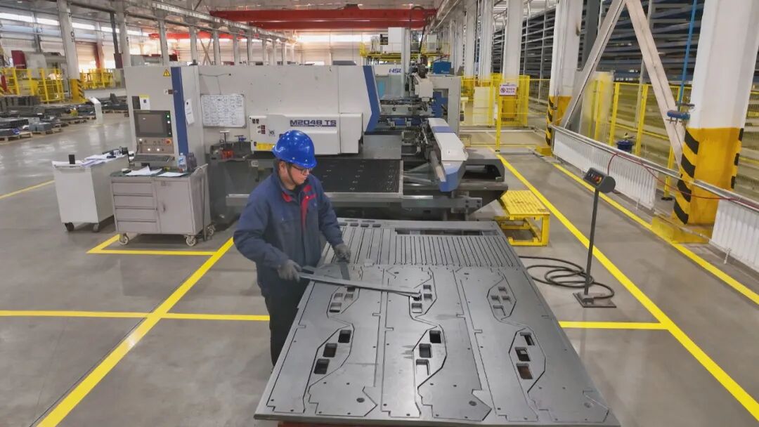 从生产线开工到产品下线,新疆鸿拓精工制造有限责任公司已具备储能箱变电柜从设计到下料、焊接、折弯到组装的完整产业链能力,实现了关键部件的本土化生产。目前,该公司生产线月产能达到80至100台,日均产出约10台,涉及零部件超过200组,生产节奏高效有序。
