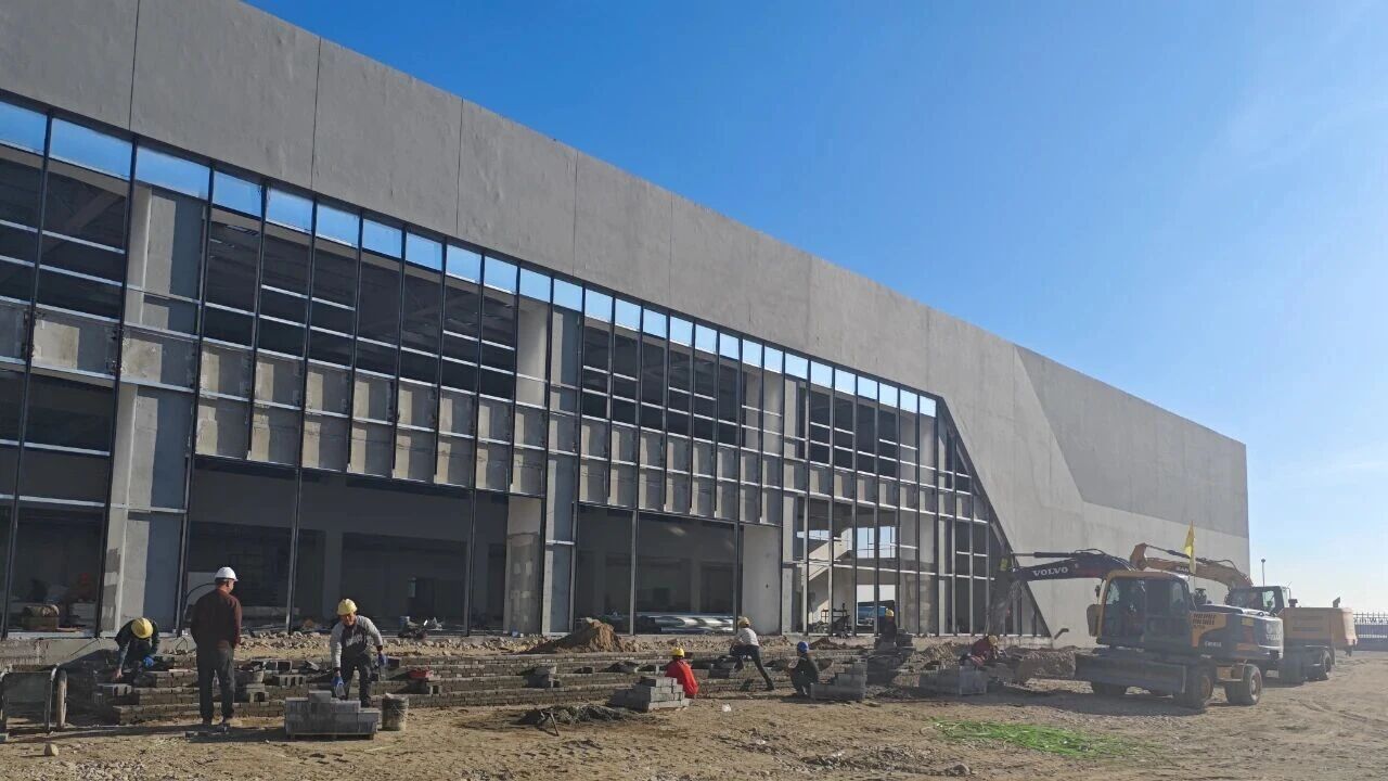 冬日渐深,寒意袭人,但霍尔果斯多式联运集结中心整车出口基地建设现场依然是一片繁忙的景象。挖机挥舞着机械臂平整场地,压路机来回作业,铲车精准转运建材,设备轰鸣声与工人的协作声奏响冲刺收尾的“交响曲”。