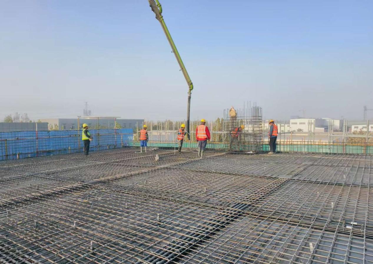 工人在对混凝土框架的顶部结构进行施工作业。李帆帆 摄