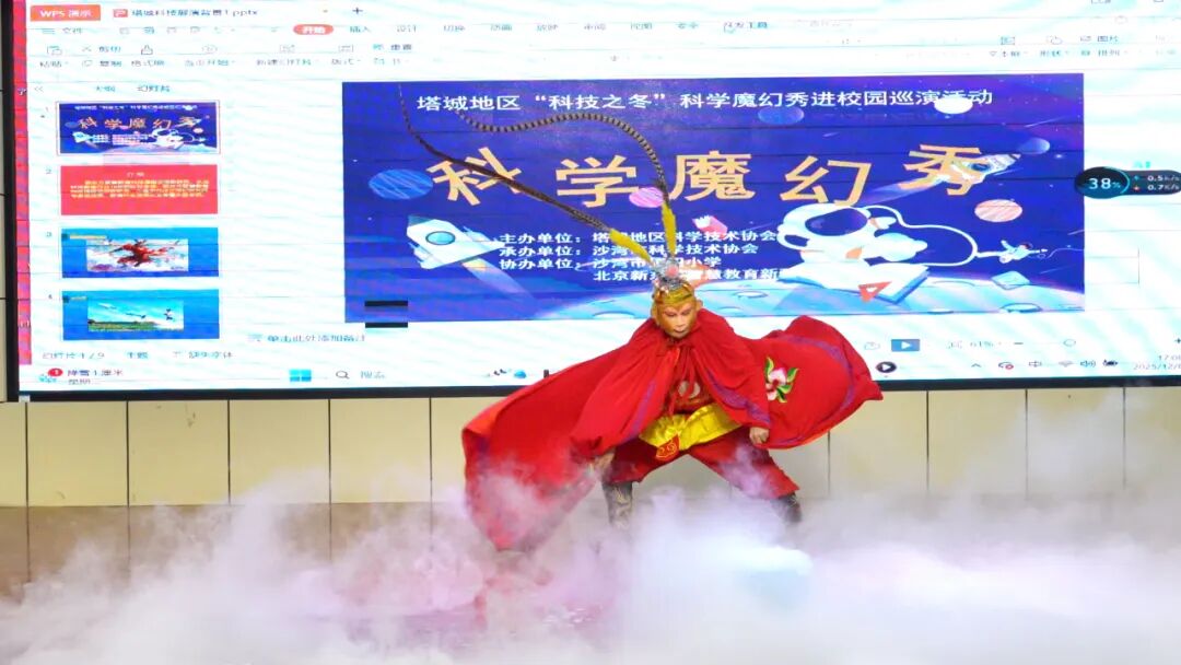 12月8日,由塔城地区科协主办的“科技之冬”科学魔幻秀巡演活动走进沙湾市第四小学。一场融合了前沿科技与奇幻体验的科学表演精彩上演,让学生们零距离感受科学的魅力,在互动参与中激发兴趣,启迪思维。