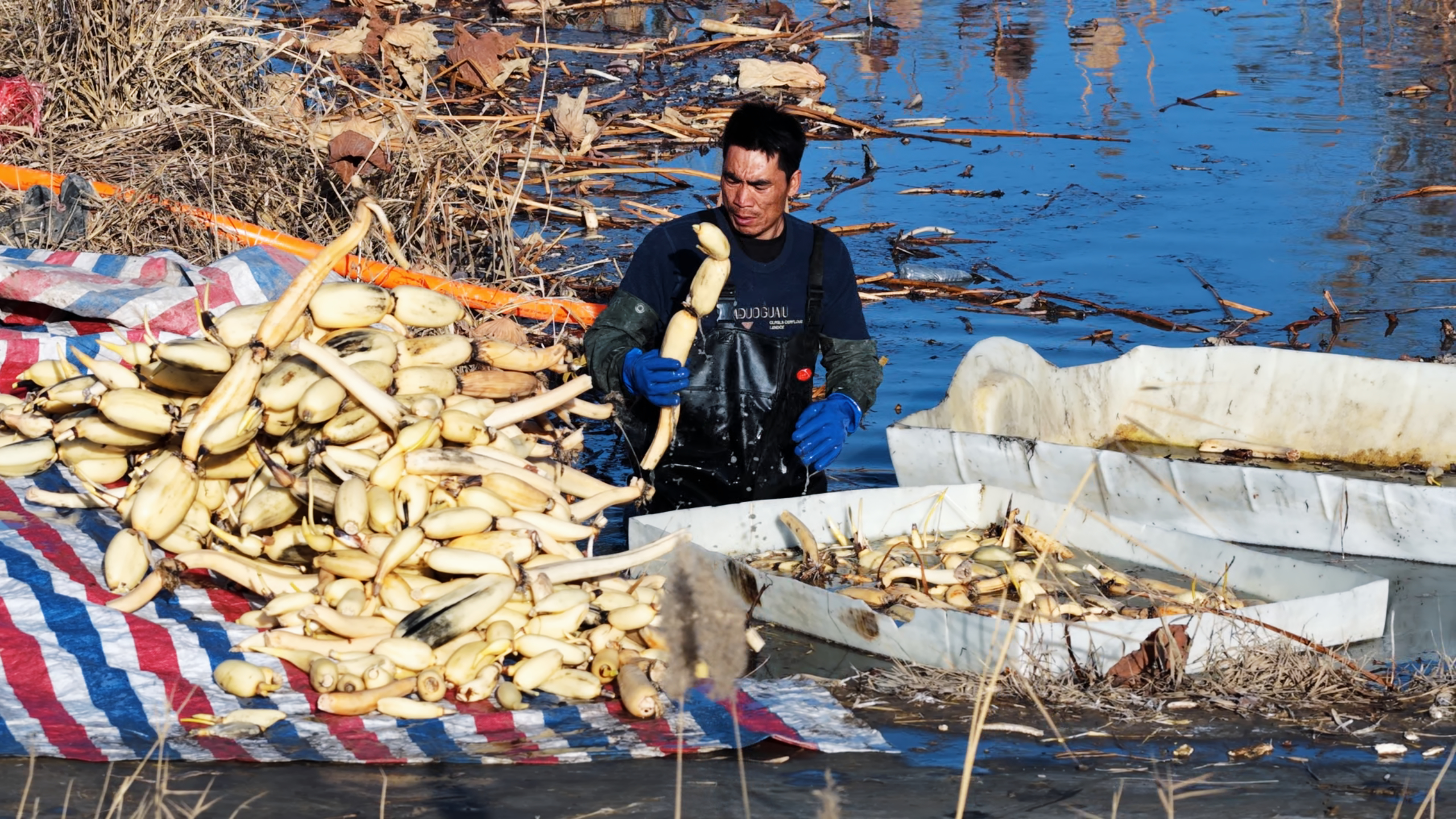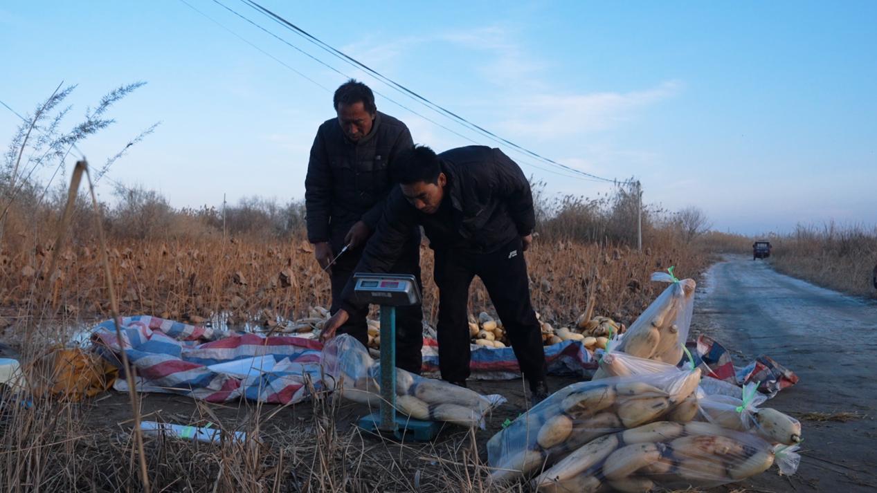 12月9日,拉力阔勒村的莲藕田里一派繁忙景象。种植户们俯身泥塘,小心翼翼地采挖新鲜莲藕,一根根硕大饱满的莲藕经冲洗、过秤、打包后,准备发往批发市场。