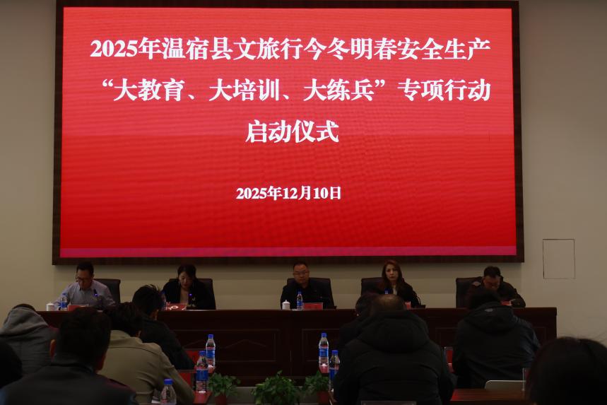 12月10日,温宿县召开文旅行业今冬明春安全生产“大教育、大培训、大练兵”专项行动暨近期安全防范工作动员部署会,全面吹响安全生产攻坚号角,全力保障文旅市场安全有序运行。地区文旅局、县文旅局相关领导及新疆理工学院专家出席开班仪式,全县各A级景区、宾馆酒店、网吧、娱乐场所、校外培训机构、出版物市场、旅行社、涉旅企业、导游、讲解员等115名文旅行业从业人员参加会议。