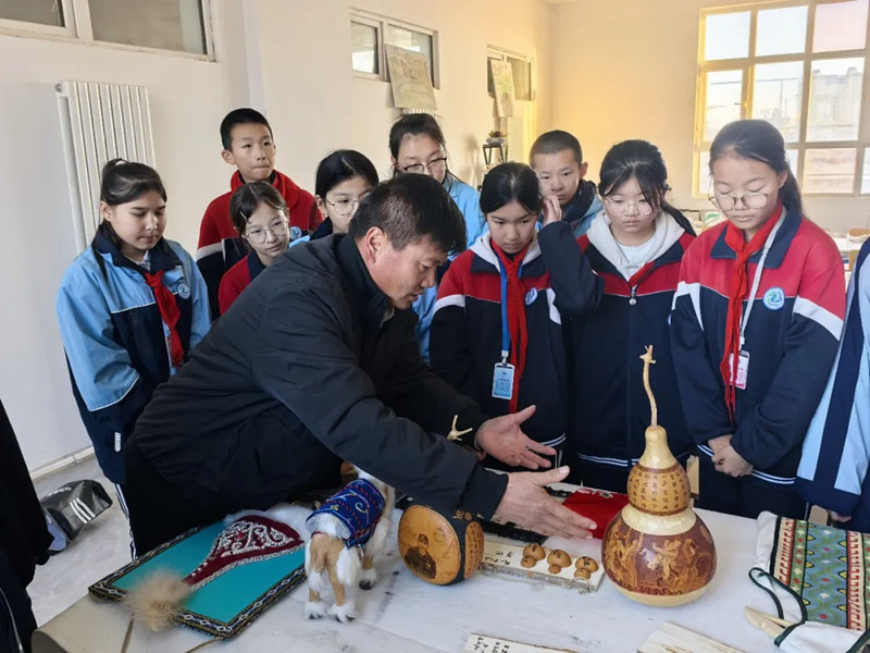 在中华优秀传统文化的璀璨星河里,非遗技艺宛如一颗颗耀眼的明珠,承载着民族的智慧与情感。12月11日,霍尔果斯市文旅局、国门初级中学联合举办了非遗进校园活动,为同学们带来了一场艺术与文化的盛宴。