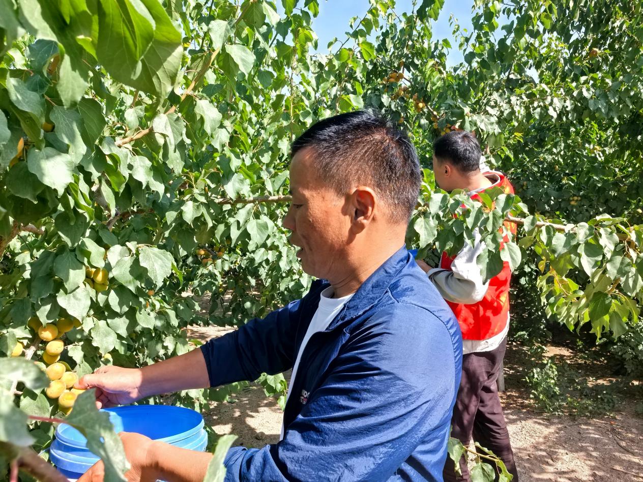 戈壁新村村民在采摘吊杆杏(李哲清 摄)