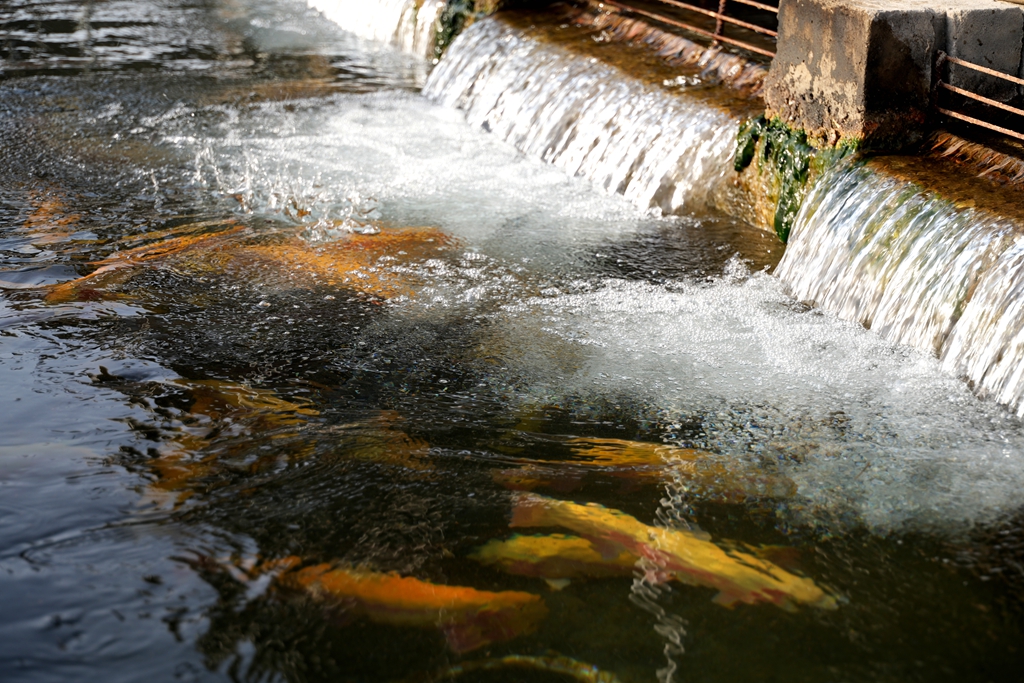 12月16日,依托优质冷水环境养殖的金鳟鱼。(艾海提·毛勒吐尔迪 摄)