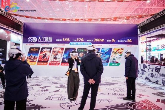 此次展会中,石代科技带来的《哪吒》VR体验项目,通过虚幻引擎与5D全息光影技术,让体验者身临其境地穿梭于神话场景,吸引不同年龄段的观众排队体验。