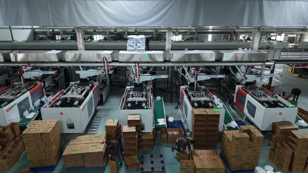 新疆港际科技有限公司一次性环保打包盒生产线高速有序运转。曾维 摄