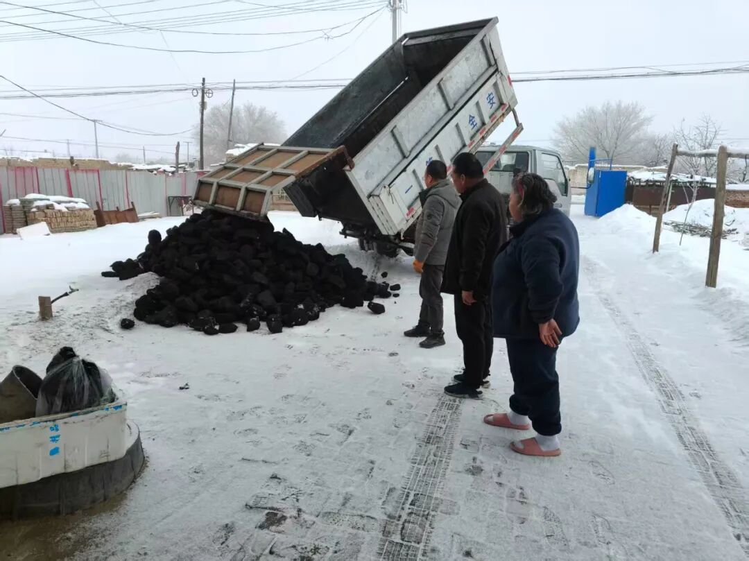 12月22日,安集海镇王家渠村为3户困难家庭发放“暖心煤”,保障群众安全温暖过冬。