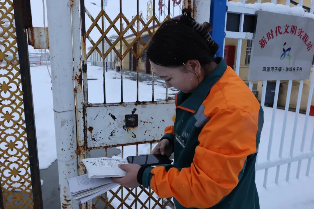 “王大爷,您的过冬棉鞋到村委会快递站啦!”12月20日,四道河子镇邮政投递员虎生芳开着快递车,穿梭在村巷间派送包裹。
