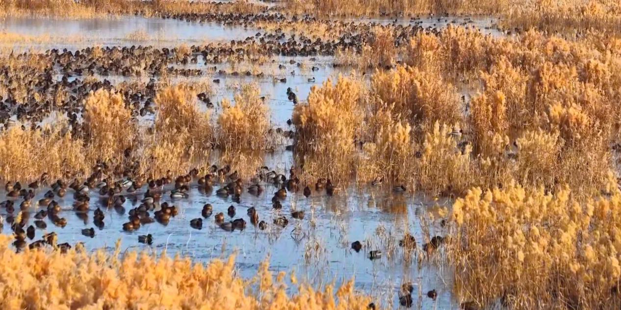 在十团昌安镇境内,5000亩湿地迎来了数万只绿头鸭越冬栖息。极目远眺,这群灵动的“小精灵”或列队游弋、或结伴扎堆、或悠然凫水,为静谧的冬日水域注入了盎然生机。得益于持续的生态输水工程,这片曾被沙丘环抱的区域,如今已然蜕变为鸟类繁衍生息的“天然天堂”。每年12月初起,这些远道而来的“贵客”便会如约而至,在这片湿地安然度过整个寒冬。