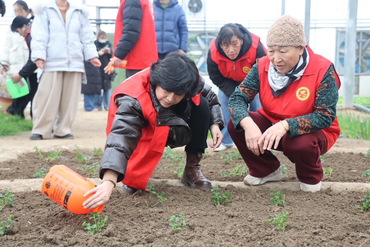 “金色友邻”志愿服务队成员正在为薄荷苗浇水。刘丽娜 摄