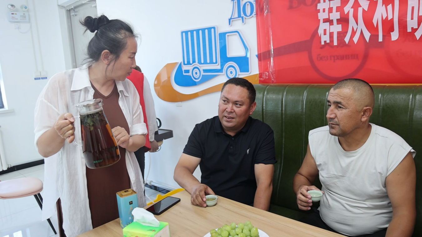 在往返中国与哈萨克斯坦经商贸易之间,何海燕也是感受到了不同国家之间的文化差异。这种跨国的经历,让她对于异国他乡的旅客多了一份关注。于是,作为阿拉山口综保区商品展销中心商圈党支部书记的何海燕便积极牵头,将商圈内的6家商户组织起来,依托党建阵地及各自门面,开展免费热水、休憩聊天、问路向导等志愿服务,让商户力量成为口岸志愿服务的重要支撑。为了让志愿服务内容更加丰富,项目更加科学、更具组织性和专业性,2025年12月,她动员20余名商户、居民等社会各界成员,组建成立了“金色友邻”志愿服务队,锚定“以茶为桥、以心传情”的宗旨,让这支志愿服务队伍成为口岸跨境交融的重要纽带。