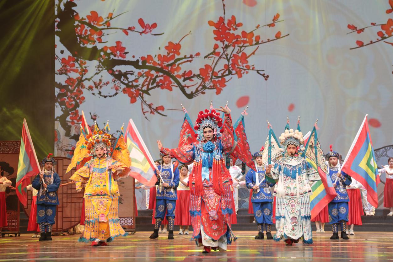 阿拉尔中学学生表演的戏曲+朗诵节目《以戏咏诗·木兰长歌》。朱志升 摄