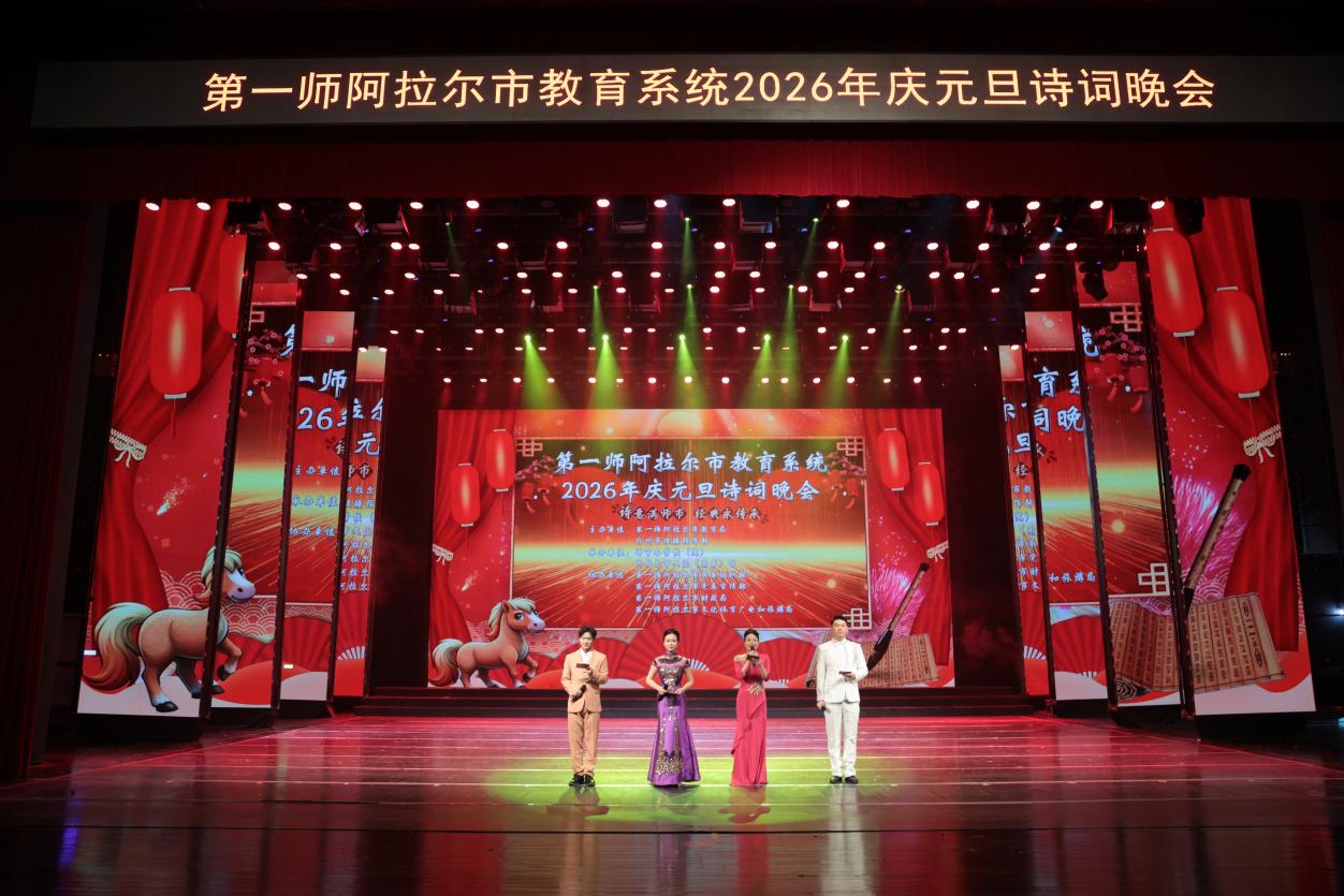 弦歌不辍漾边城,文脉悠长润心田。元旦前夕,新疆兵团第一师阿拉尔市教育系统2026年庆元旦诗词晚会在阿拉尔市大剧院举行。师市各学校(院)师生及市民群众齐聚一堂,共赴这场诗词与艺术交融的文化盛宴。