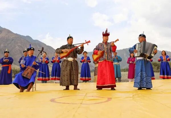 传承路上,巴塔从未停步。多年来,他足迹遍布新疆和布克赛尔蒙古自治县、博乐市、精河县及内蒙古鄂尔多斯、呼伦贝尔等地,累计授课超300课时,80余名江格尔文化爱好者在其指导下精进技艺。他每年参与乌苏市20余场文艺演出、近10场公益活动,通过非遗进景区、线上授课等形式,年均培养20余名传承人;2025年,他个人出资举办了全疆首届“阿勒坦策吉杯”民间文艺大赛,为非遗交流搭建平台;他还参与央视纪录片《史诗与长歌》的拍摄,让《江格尔》走向更广泛的公众视野。
