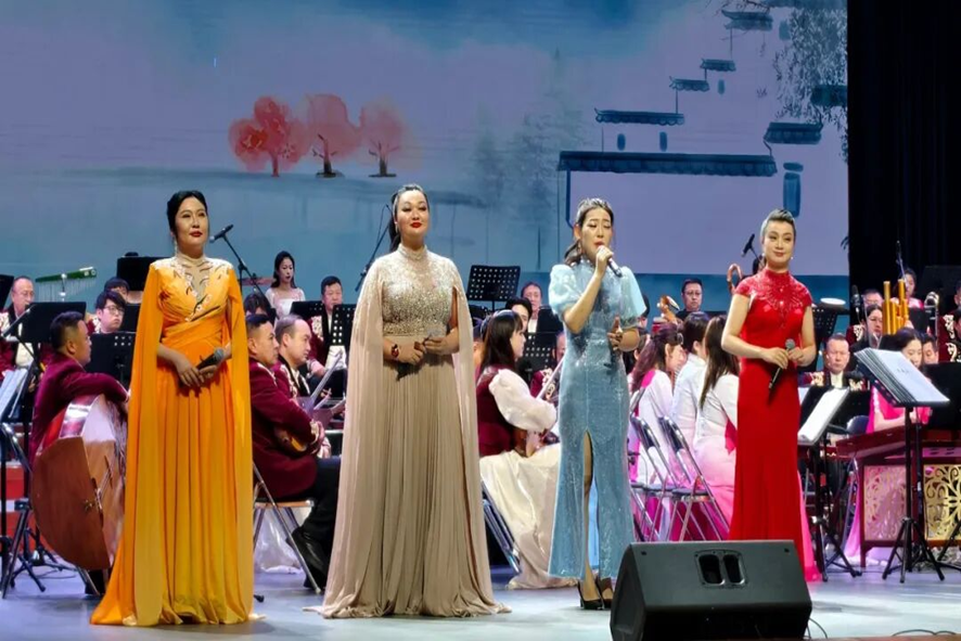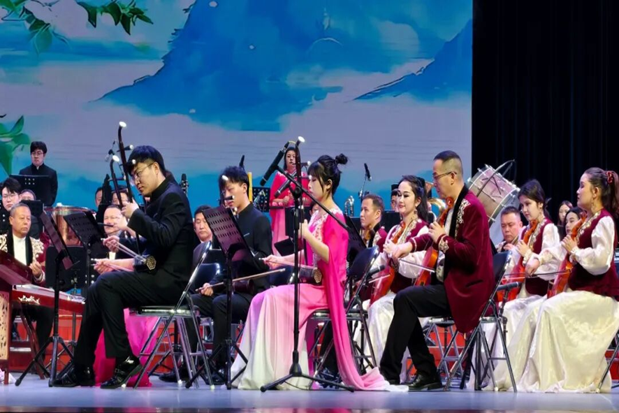 演出中,艺术家们精湛的技艺与创新的编排令人赞叹。民族管弦乐《茉莉花开》,巧妙地将江南旋律的婉转秀美,与新疆音乐中特有的明快节奏和热烈情感相融合,别具一格;《伊犁河的恋歌》让哈萨克族传统乐器库布孜与江南丝竹深情对话,醇厚与清亮的音色交织,描绘出水流千里的壮阔与波光粼粼的秀美;当《黑走马》欢快的旋律响起,融合伊犁民间舞步的伴舞与两地艺术家的联合演唱,将现场气氛推向高潮,展现了民族艺术的独特魅力与热烈奔放。