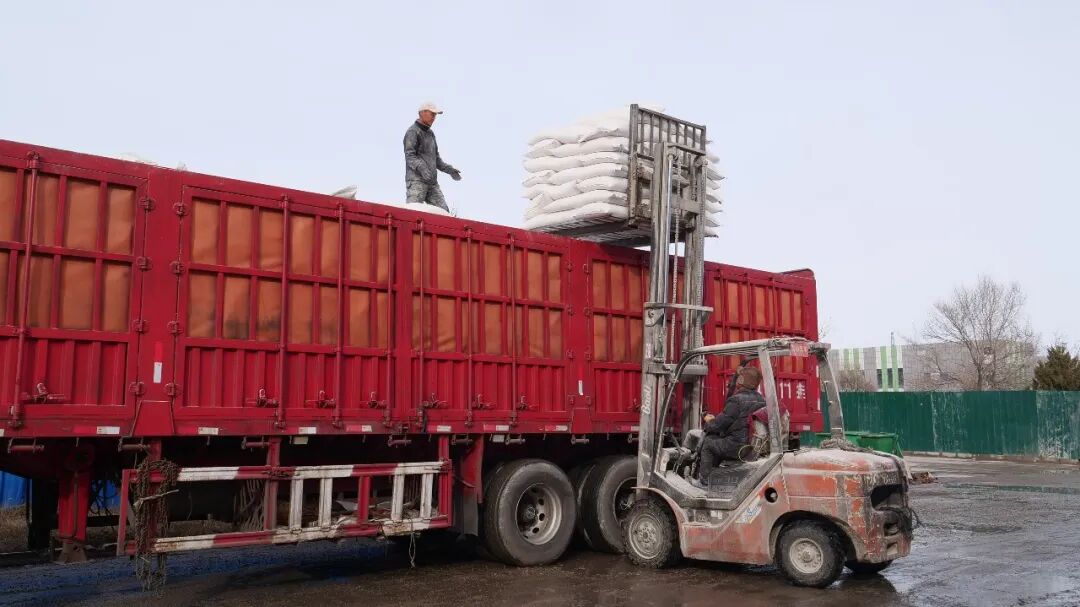 (工人正在装载麦麸产品)