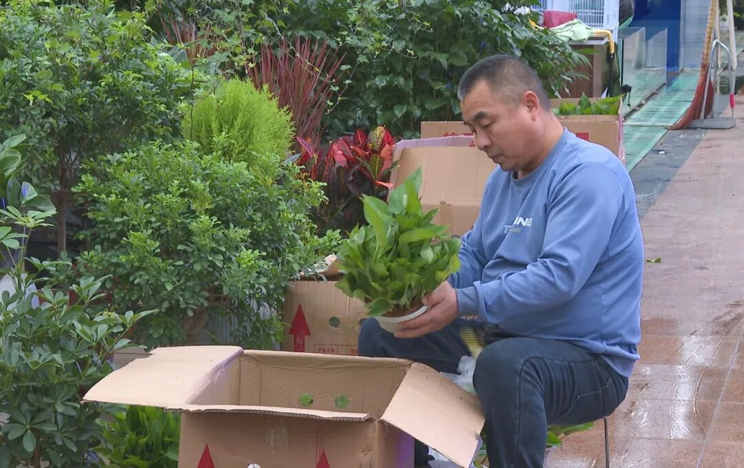 商户整理鲜花绿植。通讯员:许嘉明 摄影