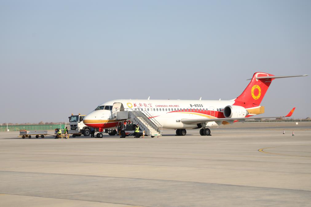 一架客机停靠在阿拉尔塔里木机场,正在为起飞做准备。郑亮 摄