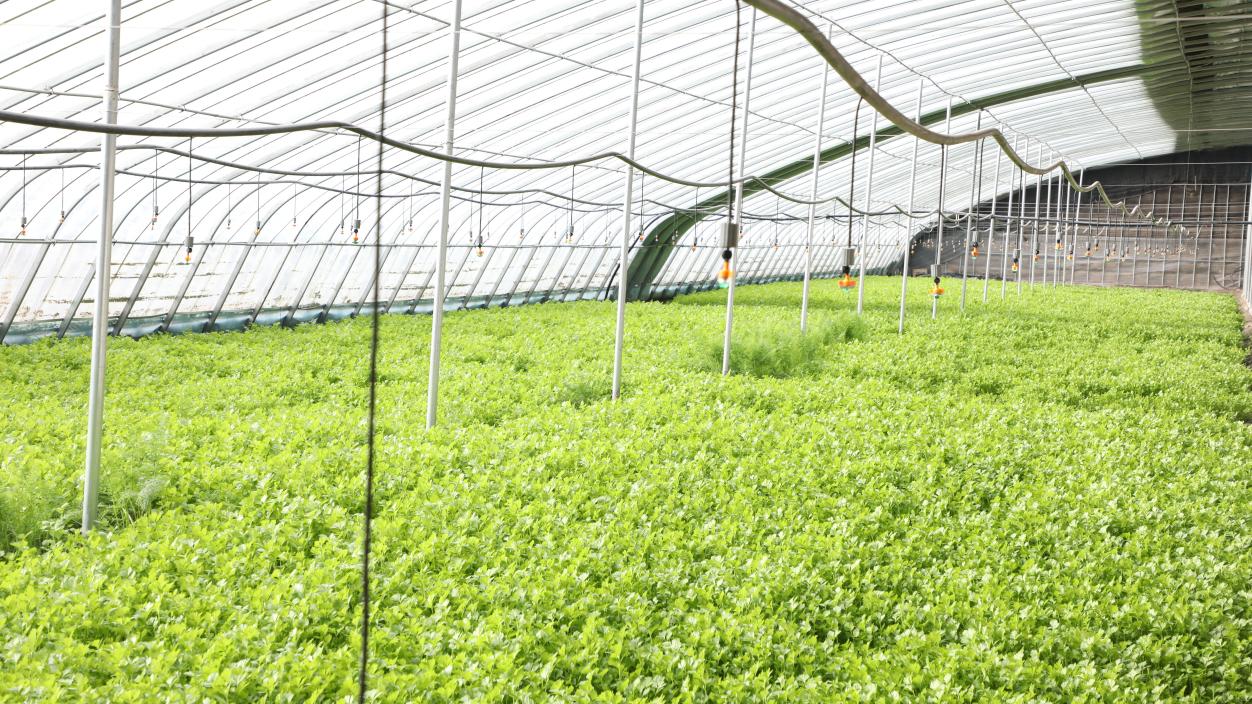 十四团金杨镇五连的芹菜种植大棚。胡彩艳 摄