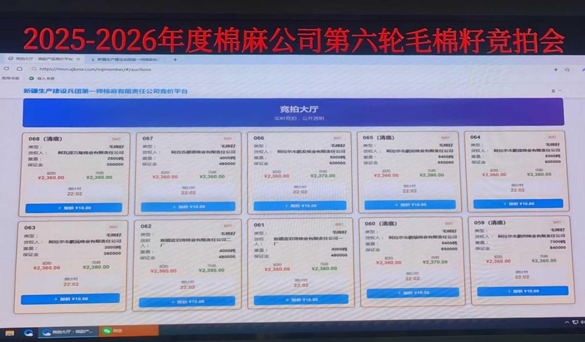 在激烈的竞价中,5家棉业公司的毛棉籽经9轮加价,最终以每吨2450元成交,较起拍价溢价90元,10家公司毛棉籽平均溢价60元,成交价均高于同期市场价格及竞拍预期。