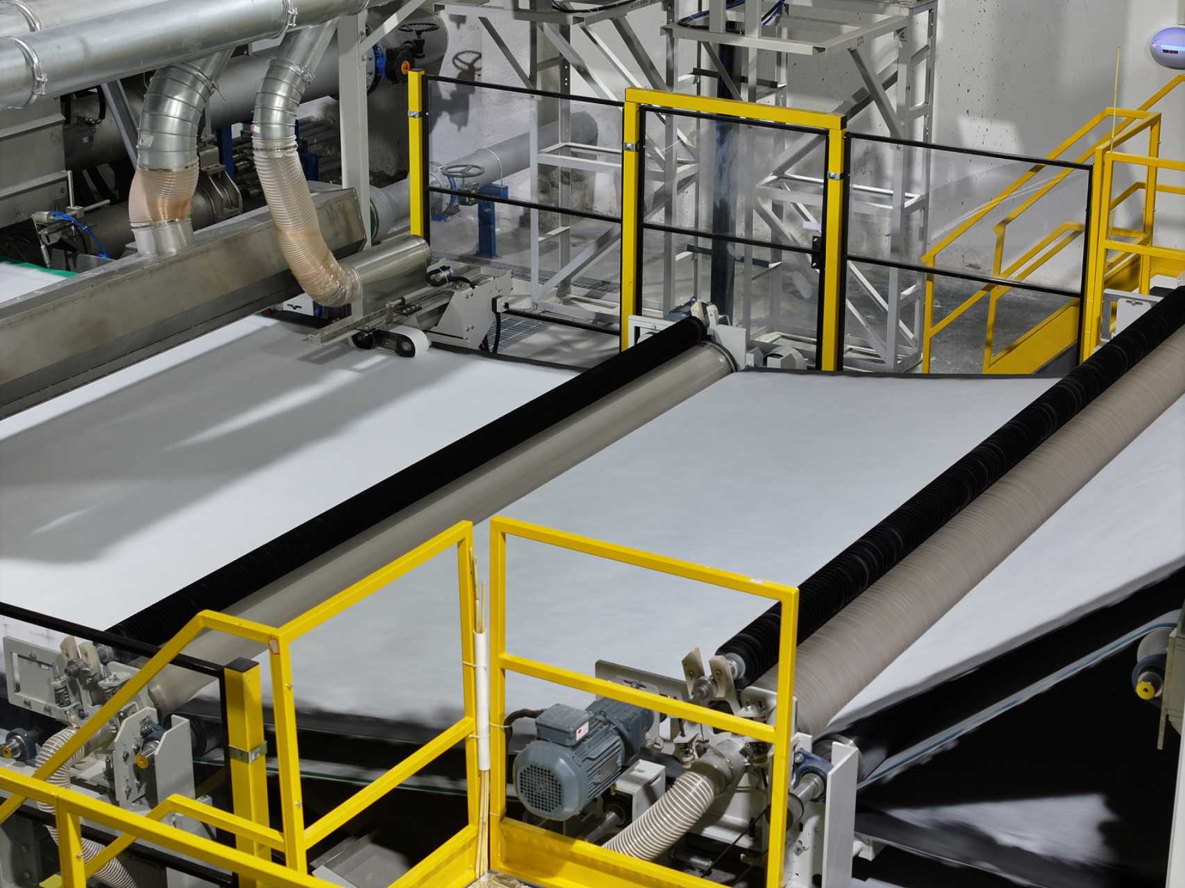 阿拉尔丝路新材料有限责任公司水刺非织造布生产线。 李韦钰 摄