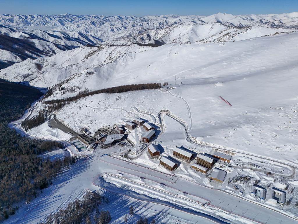 这是1月17日拍摄的新疆阿勒泰可可托海国际滑雪度假区(无人机照片)。新华社记者 胡虎虎 摄