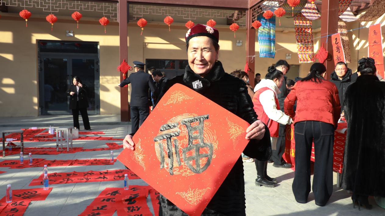 “今天的活动太热闹了,拿到了心仪的春联,我心里特别开心,祝大家新年快乐、身体健康、万事如意!”村民古丽曲曼·阿山捧着春联,笑容格外灿烂。
