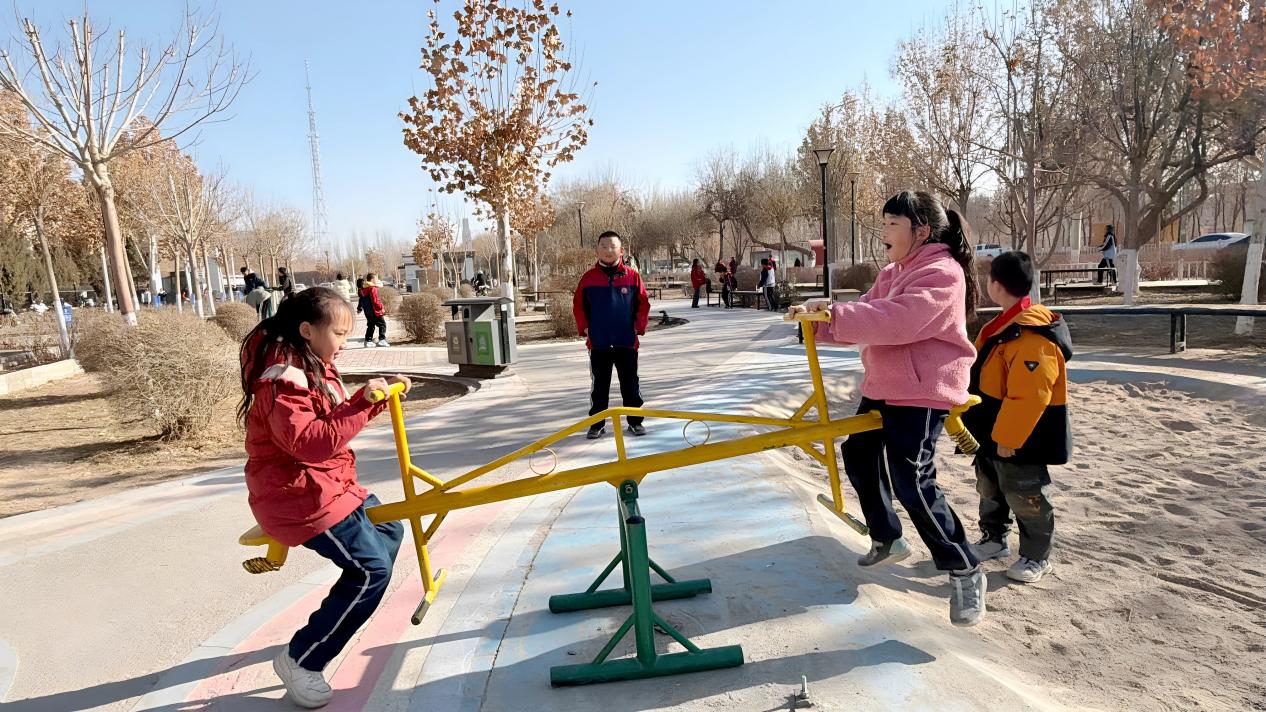 公园里还种植了绿植,修建的休闲亭、儿童游乐设施等细节充分考虑了全年龄段居民的需求。学生曾乐雯开心地说:“新修的公园里有跷跷板、健身器,我每次放学都和好朋友一起玩。”这些“小而美”的空间,已成为承载社区生活与亲子时光的新载体。