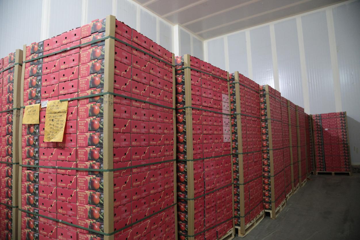 仓储扩容是破解销售难题的关键。在爱疆农业公司冷库内,待销苹果整齐码放在货架上,制冷设备平稳运行,以维持适宜保鲜温度。“目前库容达8000吨,2026年将扩容至万吨以上。”何志祥介绍,充足的仓储能力让企业摆脱了对收购商的依赖,还能有效平抑市场价格。2025年,公司收购、自产苹果共计5000吨,营收突破8000万元,产品远销福建、上海、杭州等多个省市。