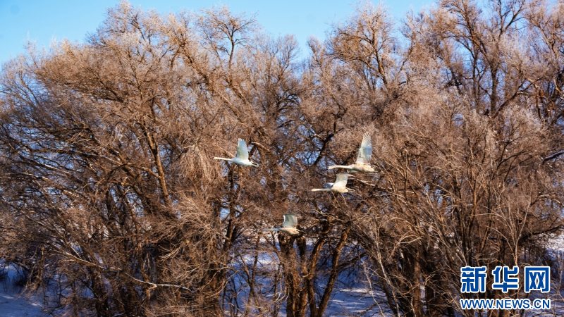 1993年11月,两只疣鼻天鹅带着3个孩子突然飞到夏合勒克村,落在了村民韩新林门口的鱼塘中。韩新林连续几天给天鹅投放食物,帮它们熬过寒冬。没想到,这个善意的举动,引来了越来越多天鹅年年到此过冬。从最初的一家五口,增加到如今超过1000只的庞大家庭。每年冬季,它们从远方如期而至,与这里的雾凇、晨雾和霞光,共同绘就一幅生命与自然相守的温暖画卷。