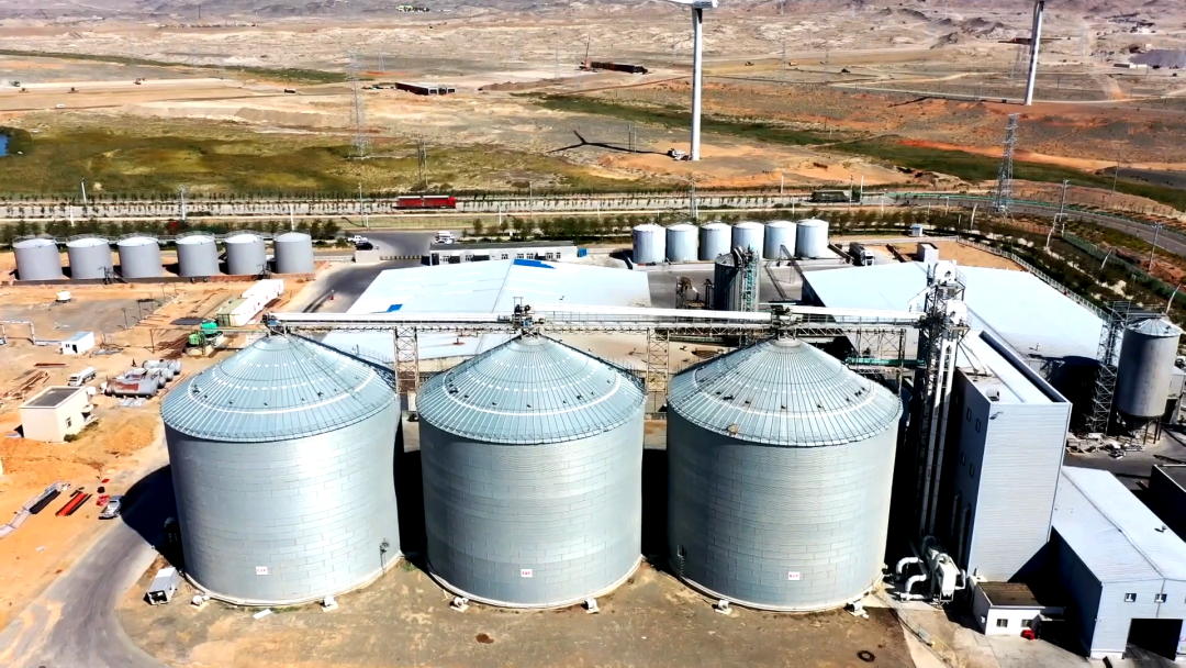 阿拉山口金牧生物科技有限公司粮食筒仓。阿拉山口市融媒体中心供图