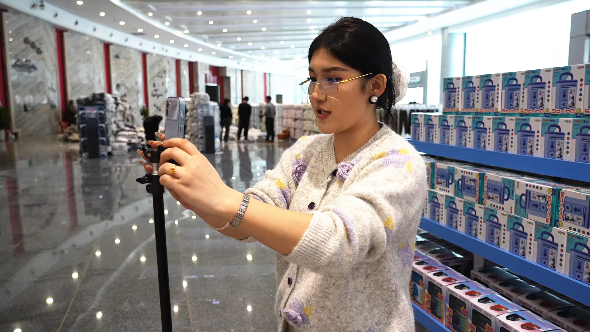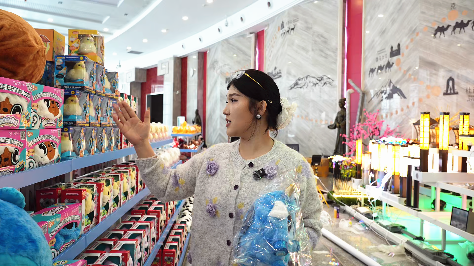 那孜叶尔克·别勒克波力对所有商品如数家珍,现场推介了玩具、花瓶、服装等好物,让客商直观感受到商品的质量和优惠的价格。