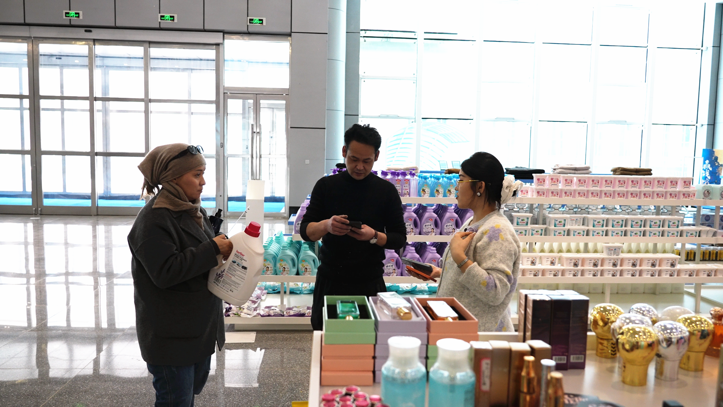 从大学毕业生到专业主播,那孜叶尔克·别勒克波力仅用了3个月就完成了华丽蜕变。如今,她的海外直播账户粉丝量已有3000多人,每天都有很多外国客商找她现场看货。“今天接待的这一批客户是从阿拉木图来的采购商,主要了解洗洁精之类的产品,这是现在卖得最火的货。”那孜叶尔克·别勒克波力说。