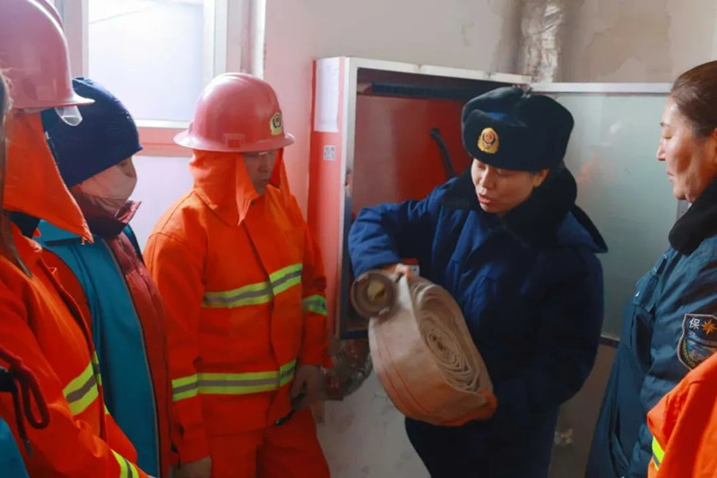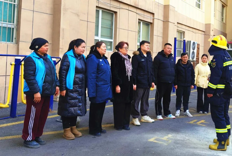 为提升住宅小区尤其是高层建筑抵御火灾风险的能力,保障人民群众生命财产安全,霍尔果斯市亚欧西路街道索伦社区邀请市消防救援大队开展消防安全演练,通过“实操+教学”相结合的方式,将消防安全知识送到居民家门口。